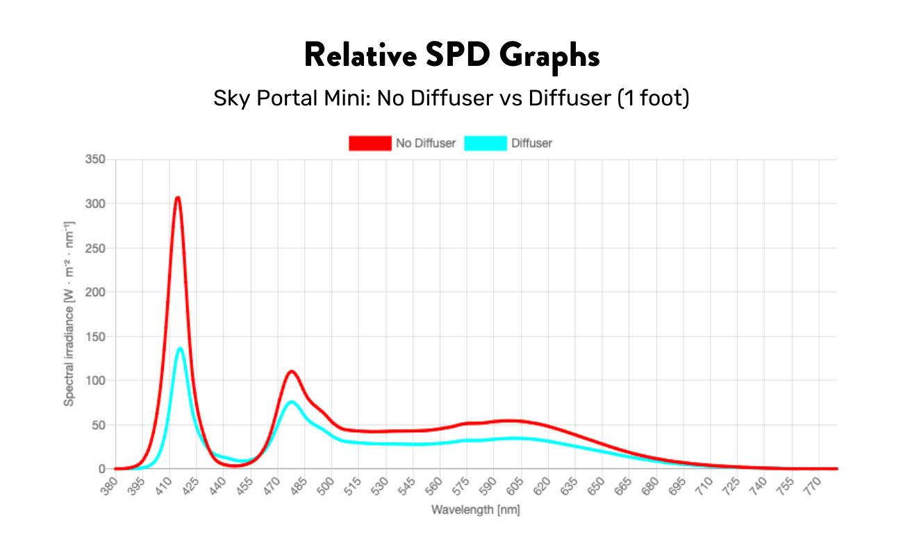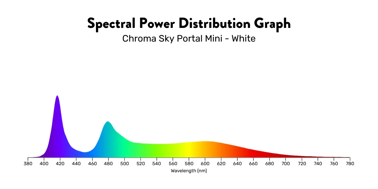 What’s most interesting is the lack of “blue light” at around 450nm, often considered the blue light hazard zone. Though the inclusion of higher frequency violet light at around 420nm and turquoise light at 480nm still gives the Mini a large dose of circadian friendly light.