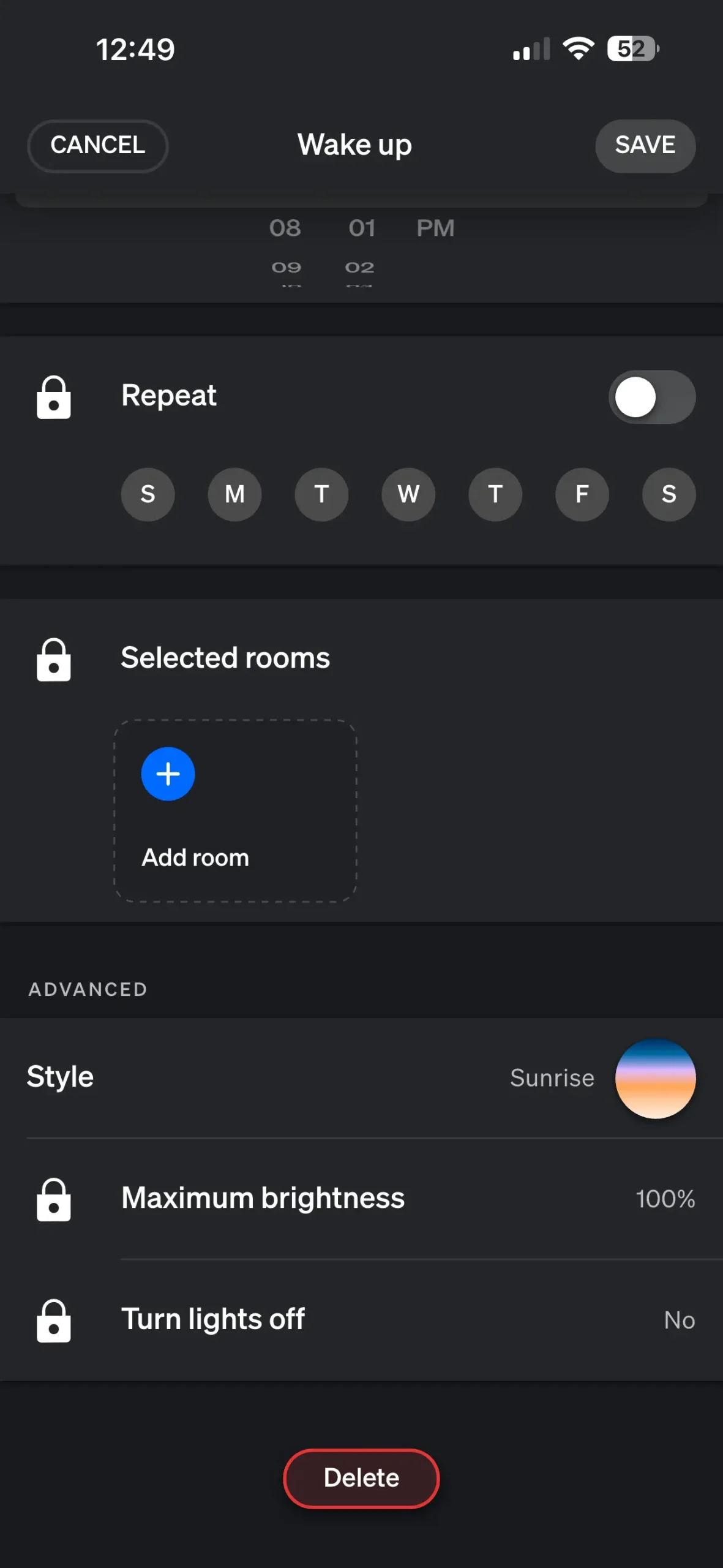 If you want to enable your sunrise at a specific time, you’ll need to go in and change these settings for both sequences; there’s no simple “start at this time” option.