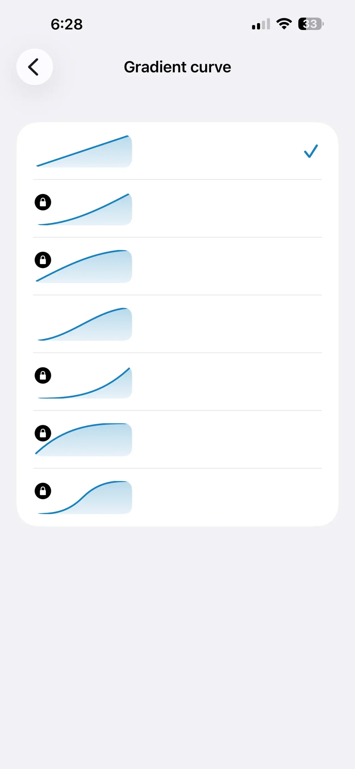You can also choose from multiple different color gradients, and you can change the actual curve, which is very unique to this app as well.
